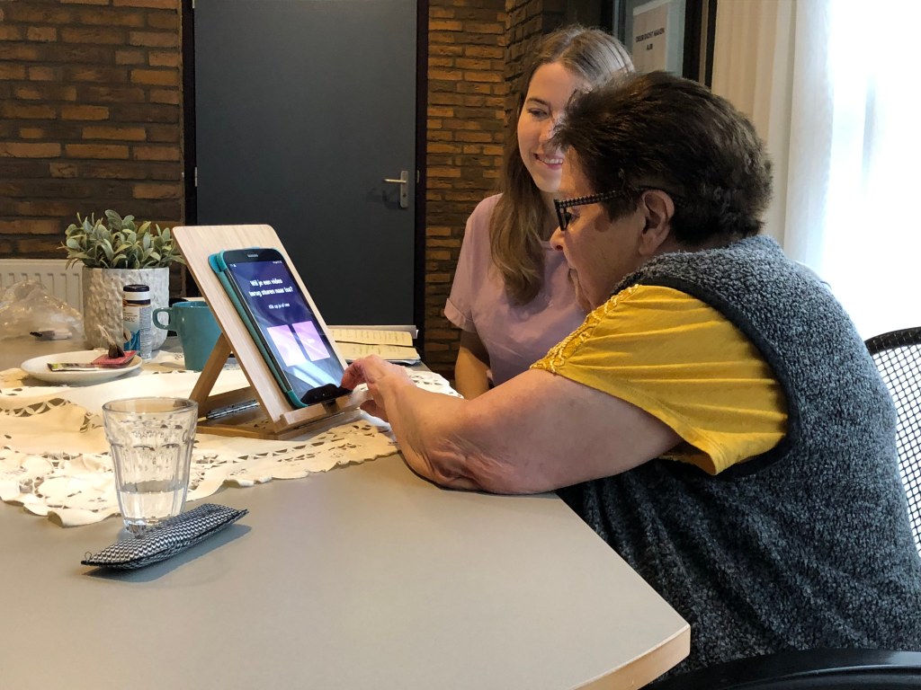 “Als het makkelijk kan, zou ik het heel leuk vinden om filmpjes te zien van de kinderen! Voor als het bellen weer niet lukt! Ja een antwoord terug sturen lijkt me ook heel leuk!” – Older adult with dementia living in Pleyade care house.