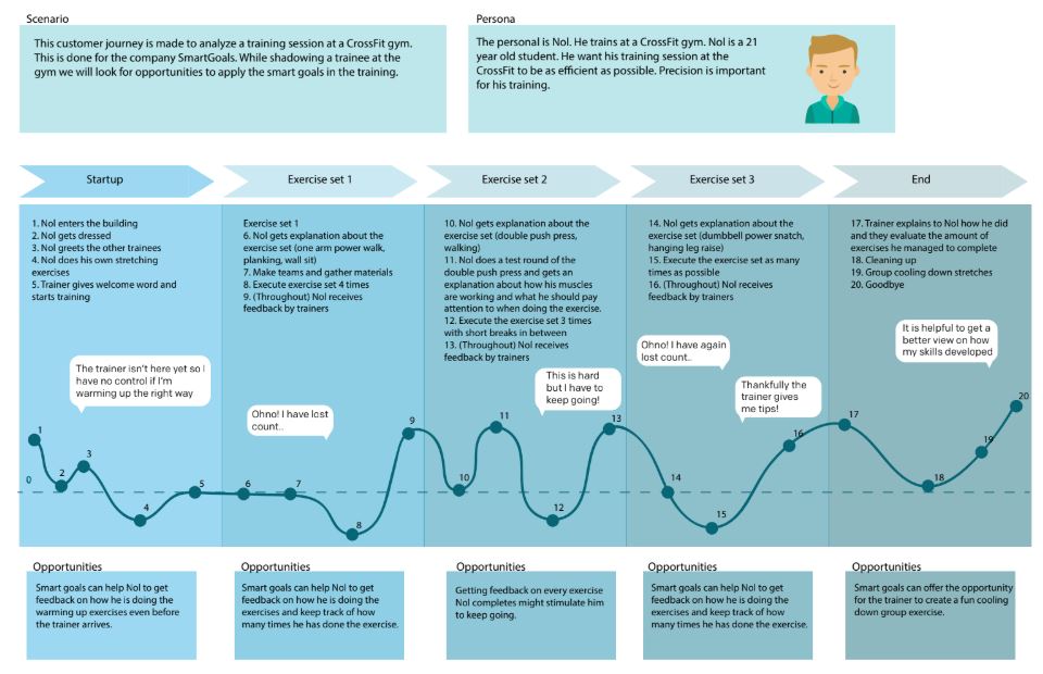 To see how applicable the SmartGoals already are for the army we did research on their trainings went to visit several army (related) locations to shadow a training and talk to experts. From these observations we created a customer journey map.