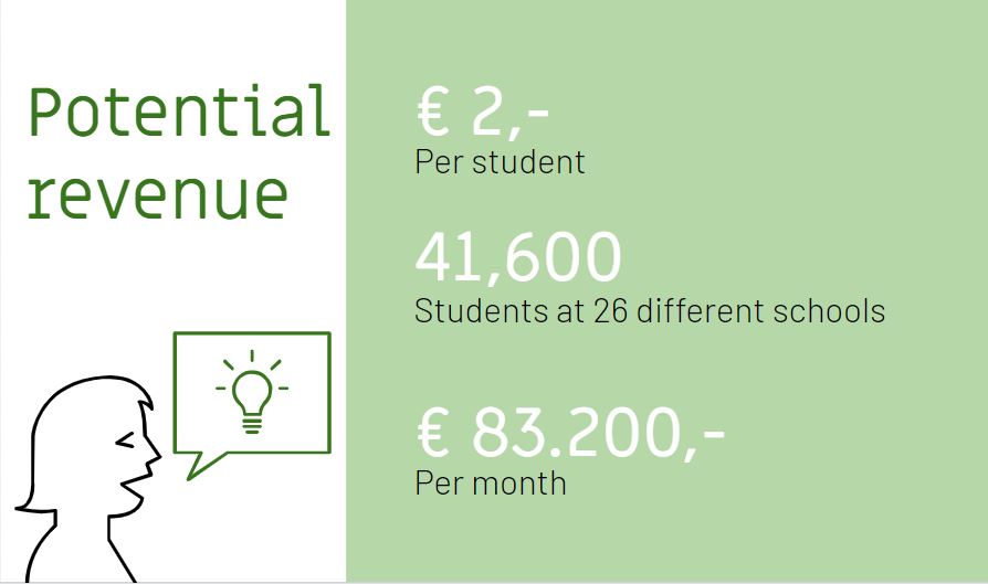 This allows for a potential revenue of 41600 x € 2,00 = € 83.200 per month.