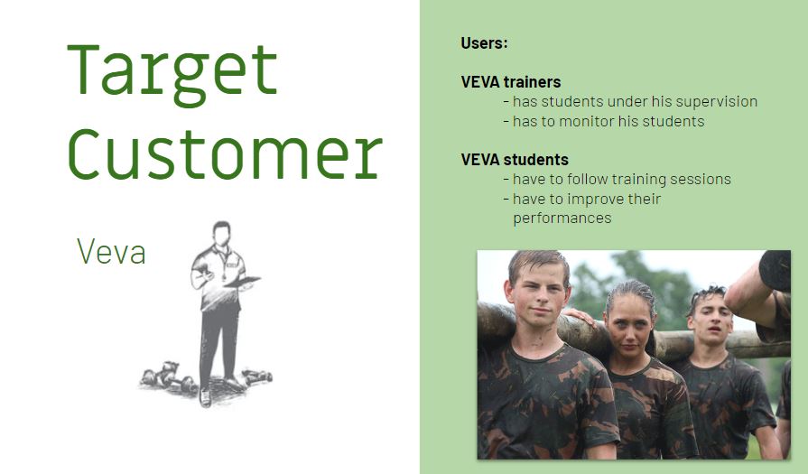 After doing market research we concluded that our initial plan to target the military should be adjusted. But since the ground forces we visited in Oirschot were already using sport system that keeps tack of their performances we decided to shift our focus the VEVA as our research shows them to be a more suitable client.